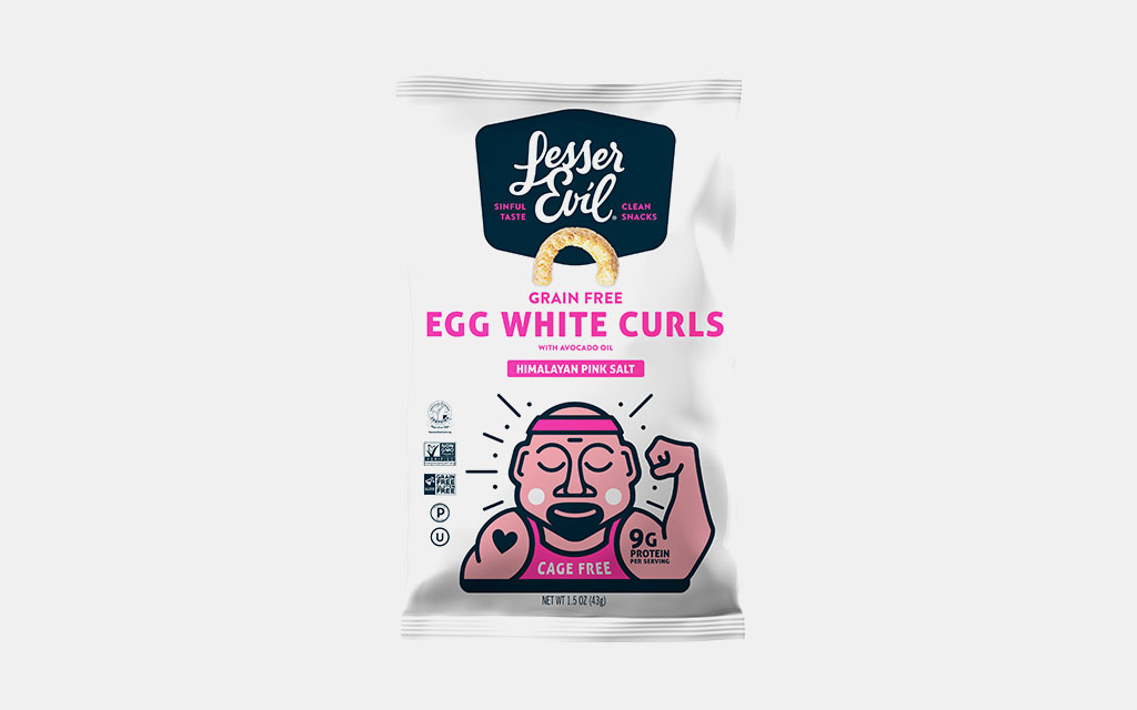 Lesser Evil is pleasantly candid about its own evolution, from churning out “potato wrinkle sticks” in 2005 to organic “egg white curls” today. The brand now operates its own factory in Danbury, Connecticut, and pairs with organic farms around the world. They make popcorn, too, but the egg curls — with whites from American Humane-certified eggs — are a revelation. Six grams of protein over 14 curls ought to be illegal.